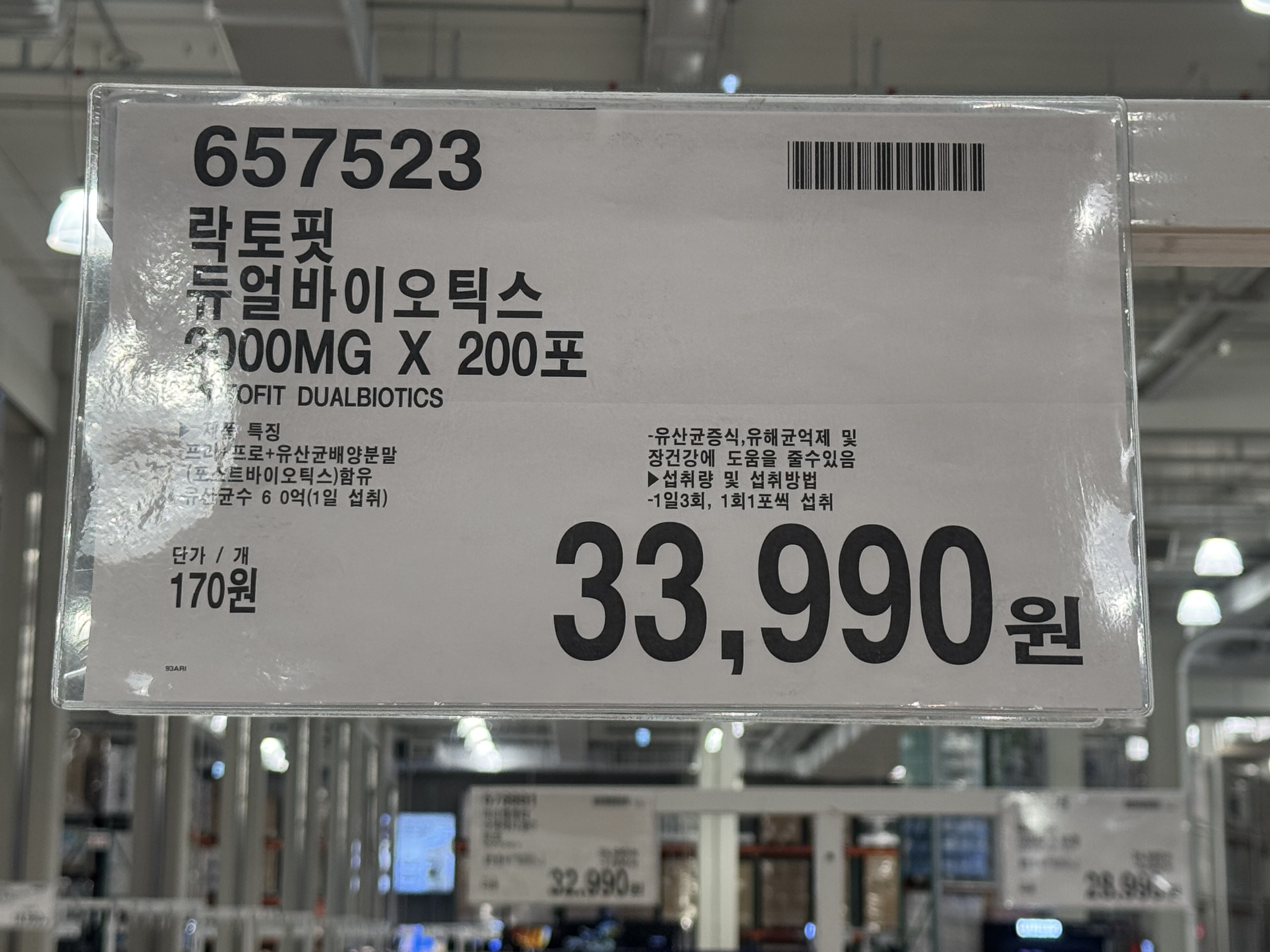 바로 락토핏 듀얼바이오틱스 2000mg x 200포, 가격은 33,990원이었답니다! 😍